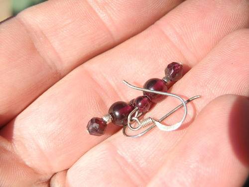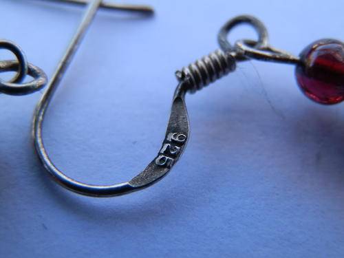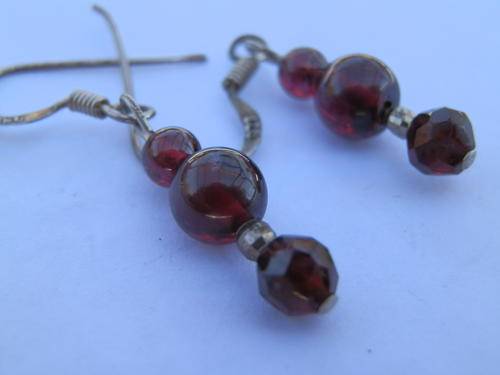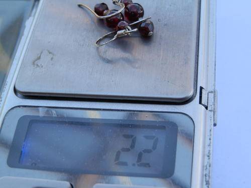 Beautiful sterling silver garnet earrings, marked 925, in good condition, size 0.5 x 3.2 cm and combined weight 2.2 g.