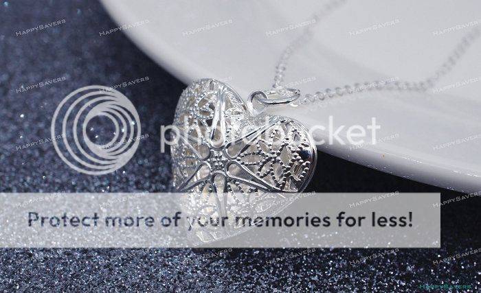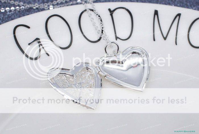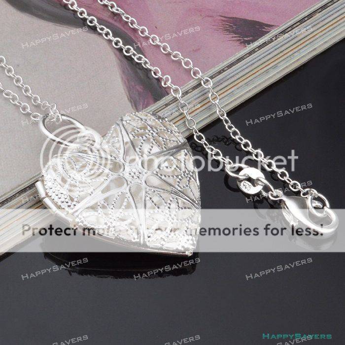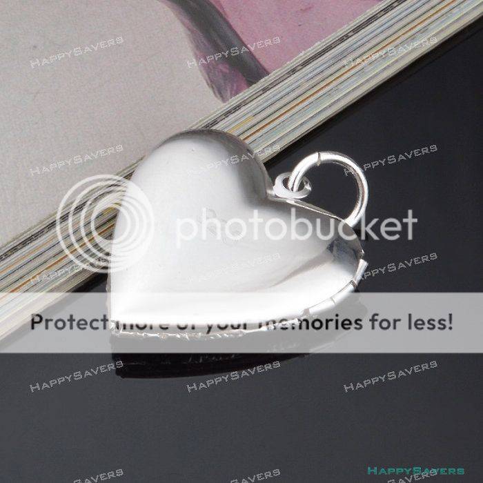 Sterling Silver Locket Photo Pendant Heart Shaped Necklace with Chain