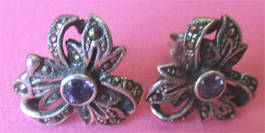 Sterling Silver Earrings set with genuine Amethyst & Marcasite