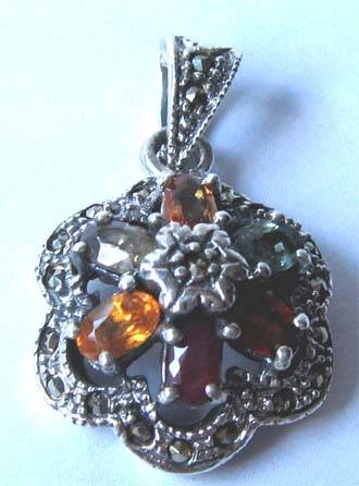 Beautiful pendant - sterling silver stamped 925 hand set with 6 tourmaline of 4.00 x 6.00 mm oval cut genuine stones - and surrounded by small round marcasite.