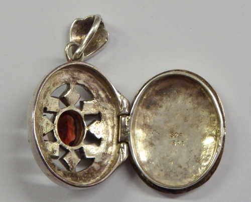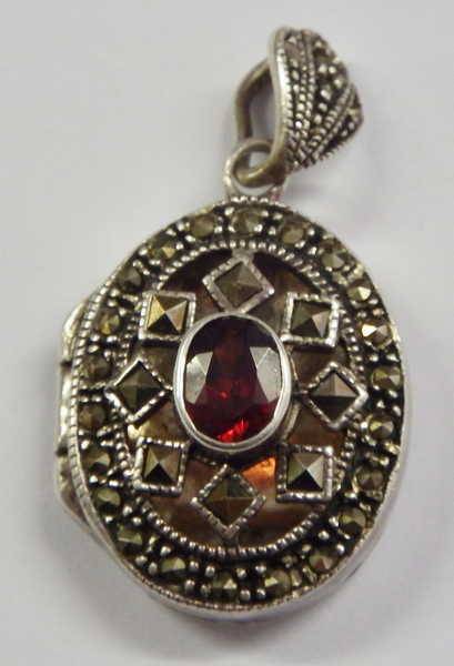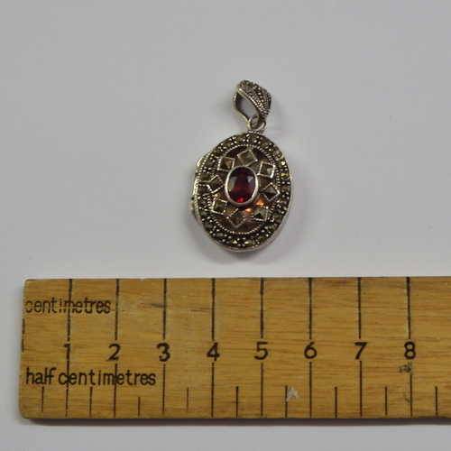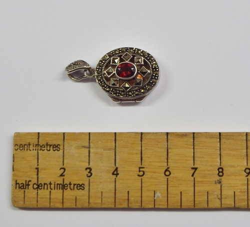 Sterling silver marcasite pendant with garnet - Weighs 10,7 grams