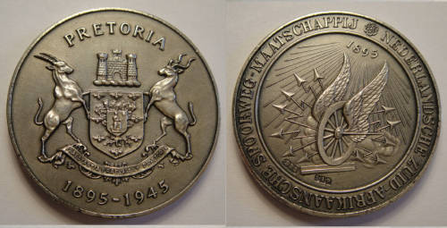 Sterling Silver Medal: Pretoria 1895-1945 (50th Anniversary of the ZAR Delagoa Bay Railway)