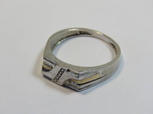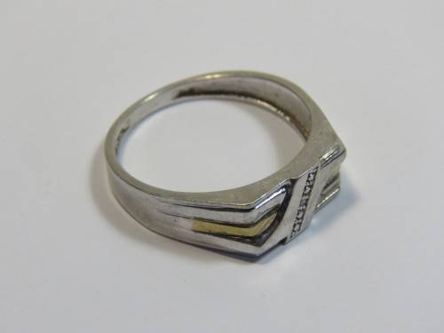 Sterling silver mens ring with very small diamond - Weighs 3.5grams - Size V