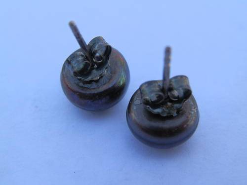 Lovely sterling silver copper freshwater pearl studs, marked 925, in good as new condition, size 10 mm diameter each pearl and the weight 2.6 g.