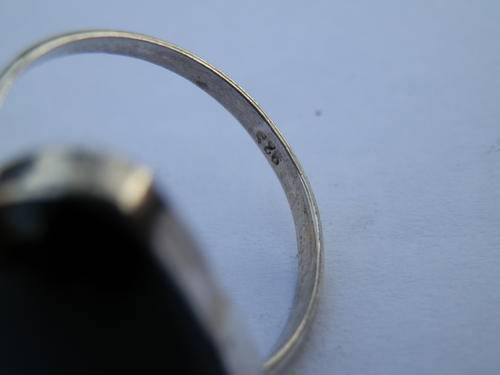 Very nice sterling silver onyx ring, marked 925, in good condition, size R / 9, head width 20 mm, stone size 17 x 20 mm and weight 4 g.