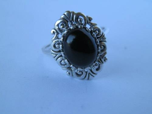 Elegant sterling silver onyx ring, marked 925 and in new condition. The size is M+ / 6.5+, head width 18 mm, size of the stone 7 x 9 mm and the weight 3 g.