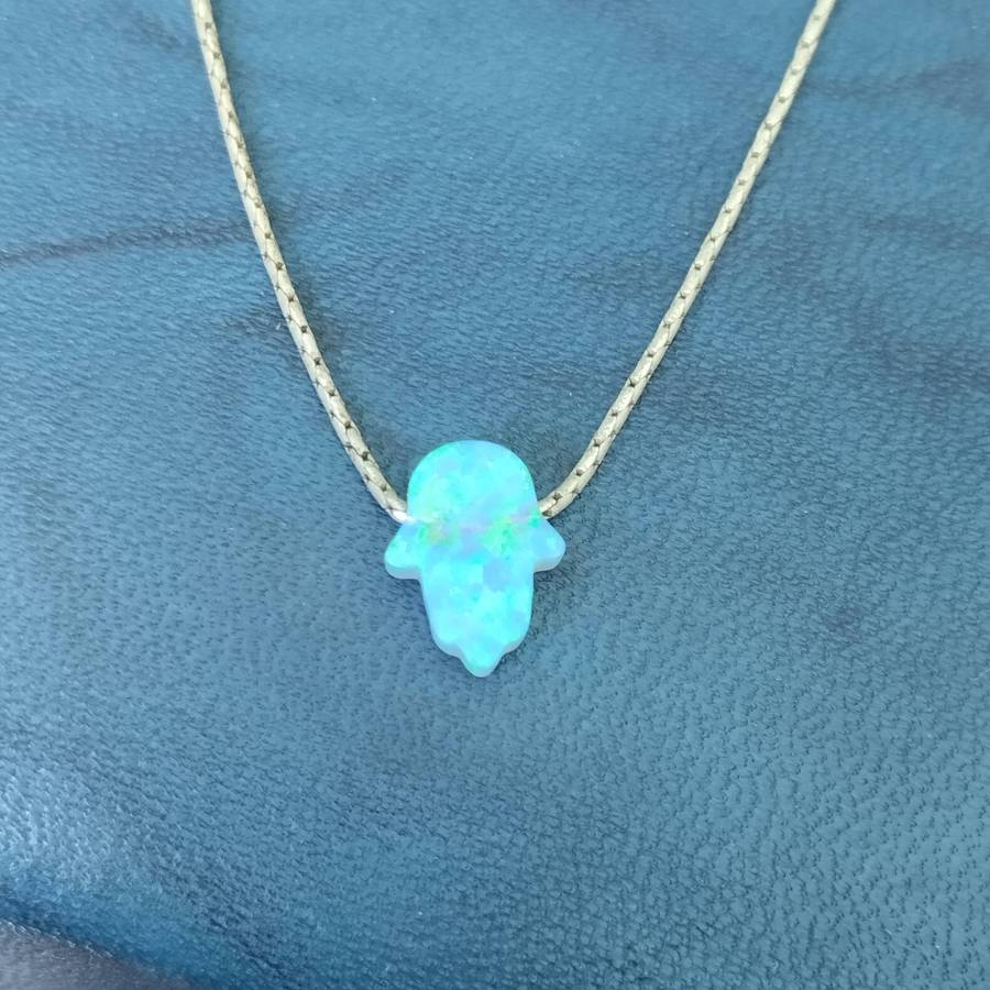 Sterling Silver Opal Hamsa Necklace on Magnolia necklace