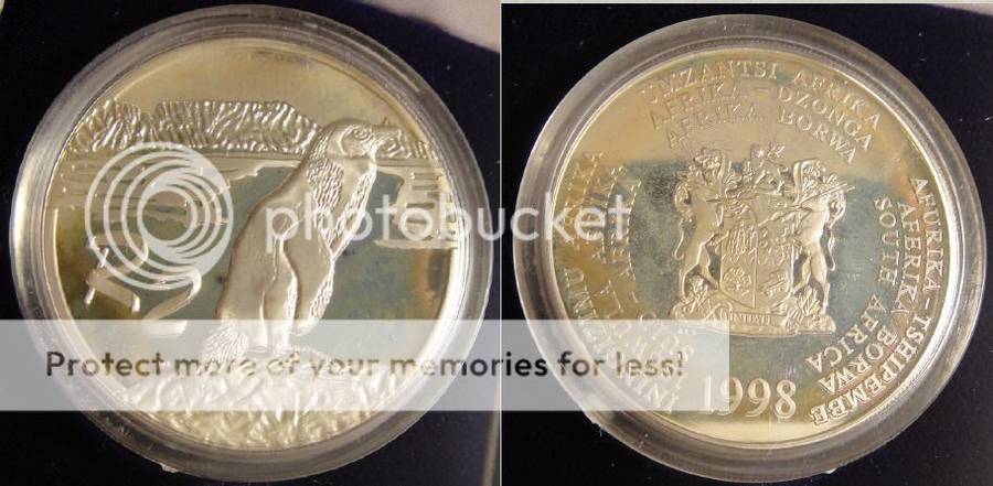Weighing 33.626 grams and struck in Sterling Silver, this proof crown is number 673 out of a limited edition of 3000 issued by the South African Mint in 1998.