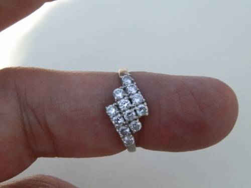Sterling silver ring set with clear stones, marked 925 and in good condition. The size is N / 7, top width 8 mm and the weight 2.2 g.