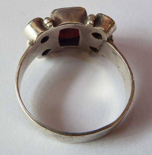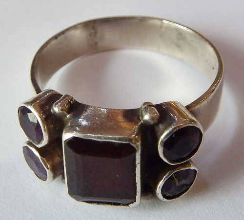 Sterling silver ring with Amethyst and glass stone - One stone chipped - Weighs 5,5 grams - Size T