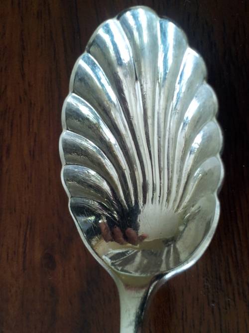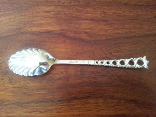 Sterling Silver Scallop Shell Filigree Teaspoon. 1902 Harry Atkin Sheffield. 16 g.