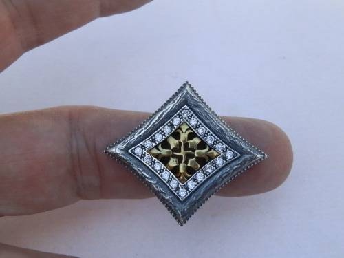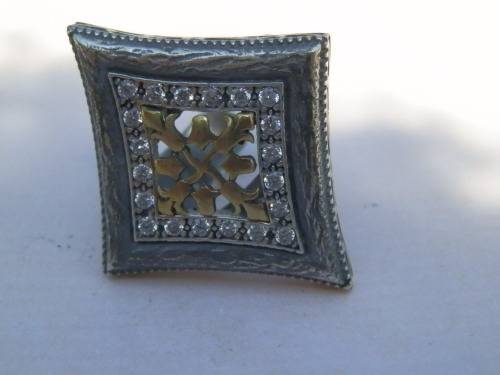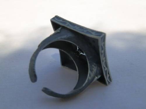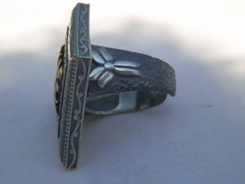 Exceptional open sterling silver topaz ring with bronze decoration and lovely detail, marked 925 and in new condition. The size now is M / 6.5, top width 35 mm and the weight 11.6 g. Thew stones are not guarantee as natural.