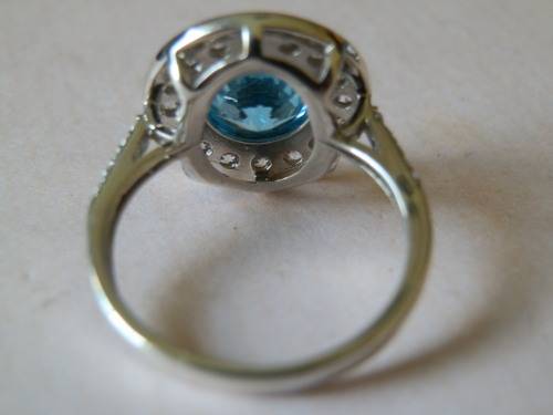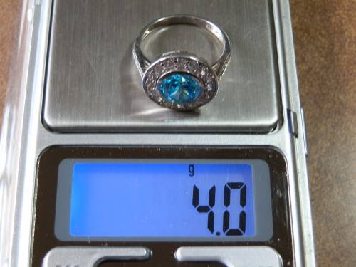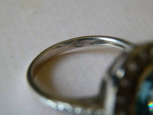 Sterling silver topaz ring, marked 925 and in good condition. The size is O / 7.5, top width is 15 mm, the size of the stone is 8 mm diameter and the weight 4 g.