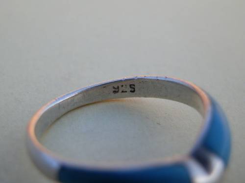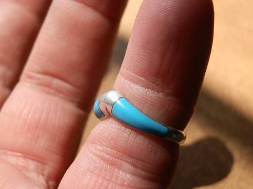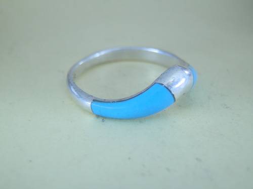 Sterling silver turquoise ring, marked and in good condition. The size is J+ / 5+, top width 5 mm and the weight 1.5 g.