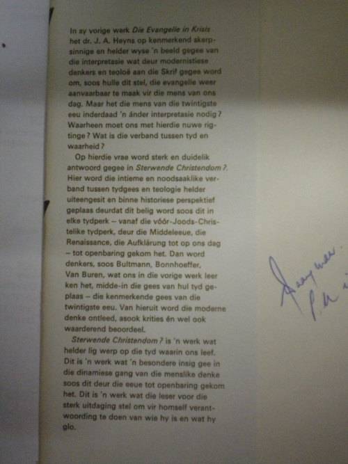 Sterwende Christendom deur dr. JA Heyns. Redelike kondisie. Onder 1kg.
