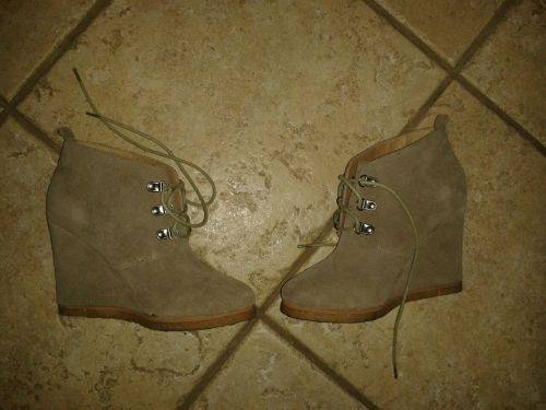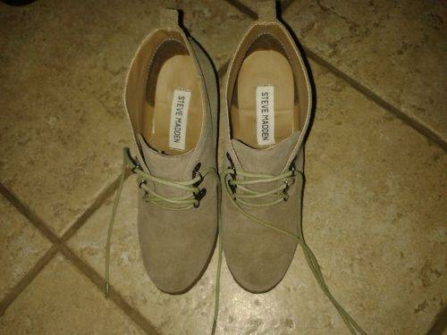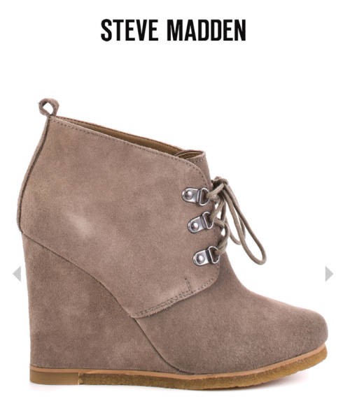 Tango into trendy looks with these unique wedge oxfords from Steve Madden. Tanngoo showcases a taupe suede upper with a lace up closure and a pull tab for an easy slip on. A 1 inch hidden platform and a 3 1/2 inch wedge heel completes this fashion forward style.