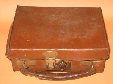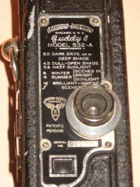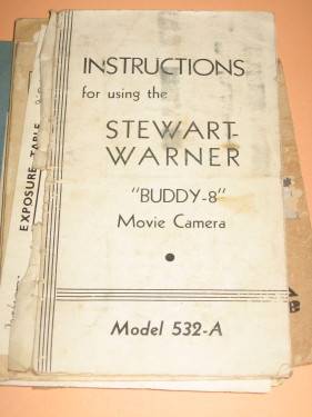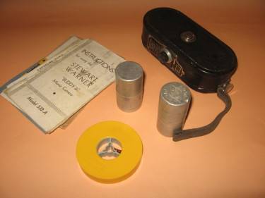 1933 Vintage Stewart-Warner Buddy 8, Model 532A Movie Camera, in a Very Old Leather Suitcase, with Film and Extra Lenses. Working condition is Unknown. Note wear with age and use.