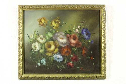 A stunning oil painting! The flowers seem to jump of the canvas! This beauty measures 43cm x 38cm and the frame measures 52cm x 47cm. Offered at a giveaway price, act fast and bid now!