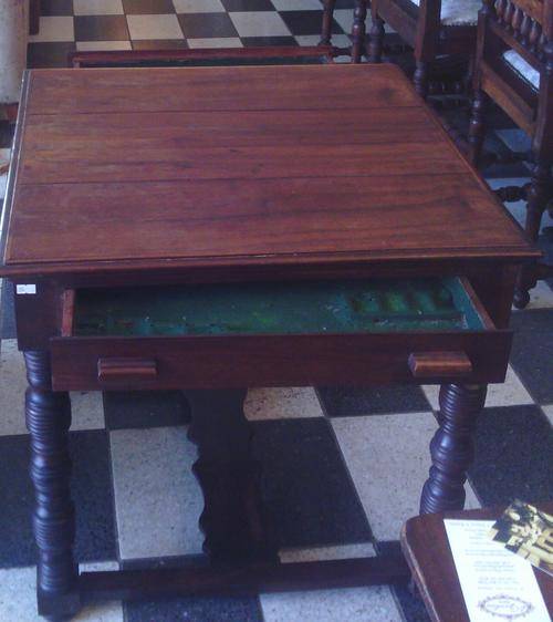 A very rare  square stinkwood games table, in a very good condition, with two drawers on sides.