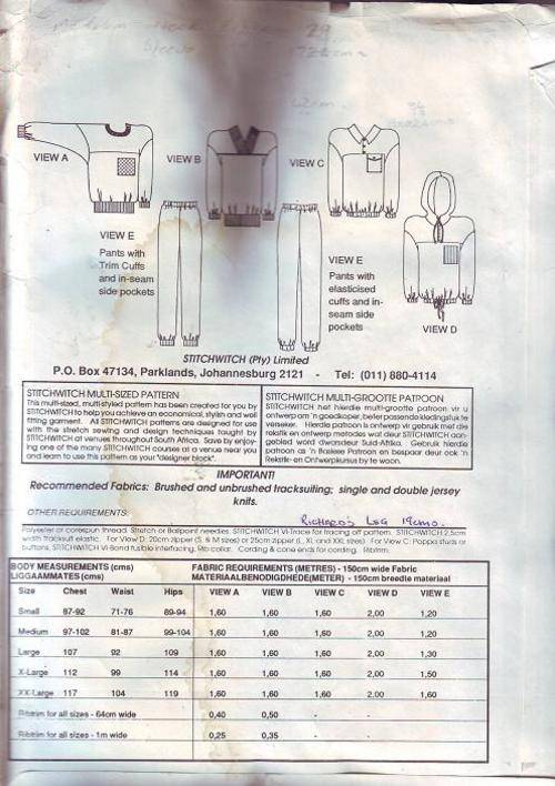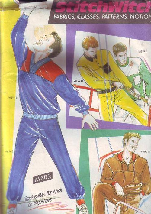 Stitchwitch sewing pattern M302 tracksuits for men used, but actual paper pattern not cut. pieces cut & copied from pattern included as per scans below.
