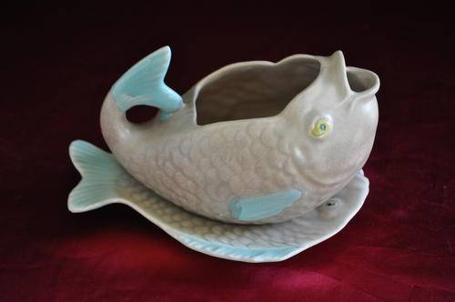 Shorter & Sons - Stoke-On-Trent Fish Shaped Gravy Boat & Saucer - Both Damaged!!!