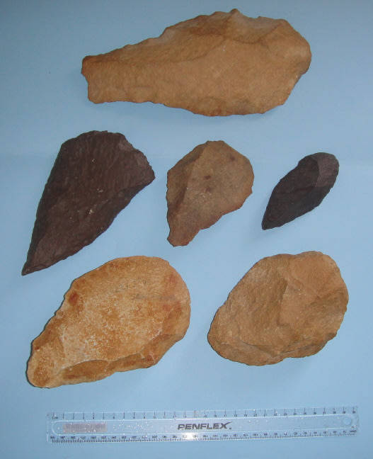 “ …. from the French acheuléen, is an archaeological industry of stone tool manufacture characterized by distinctive oval and pear-shaped "hand-axes" associated with Homo erectus and derived species such as Homo heidelbergensis.”