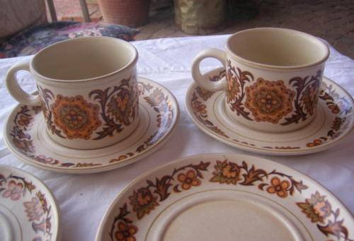On sale here are two coffee cups with four saucers. Nice to fill up a set or just as is for coffee for two, with a bite to eat. It is always nice to use quality ceramics, even if it did not cost a fortune.