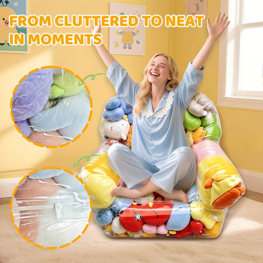 Product Features:Large Capacity Storage ᄄC Transparent PVC storage bag, perfect for organizing and storing stuffed animals, plush toys, pillows, or seasonal clothes.Clear & Visible ᄄC Transparent material makes it easy to find items at a glance, no need to dig through of toys or clothes.Durable PVC Material ᄄC Made from thick, tear-resistant PVC, dustproof, ensuring long-term use and easy cleaning.