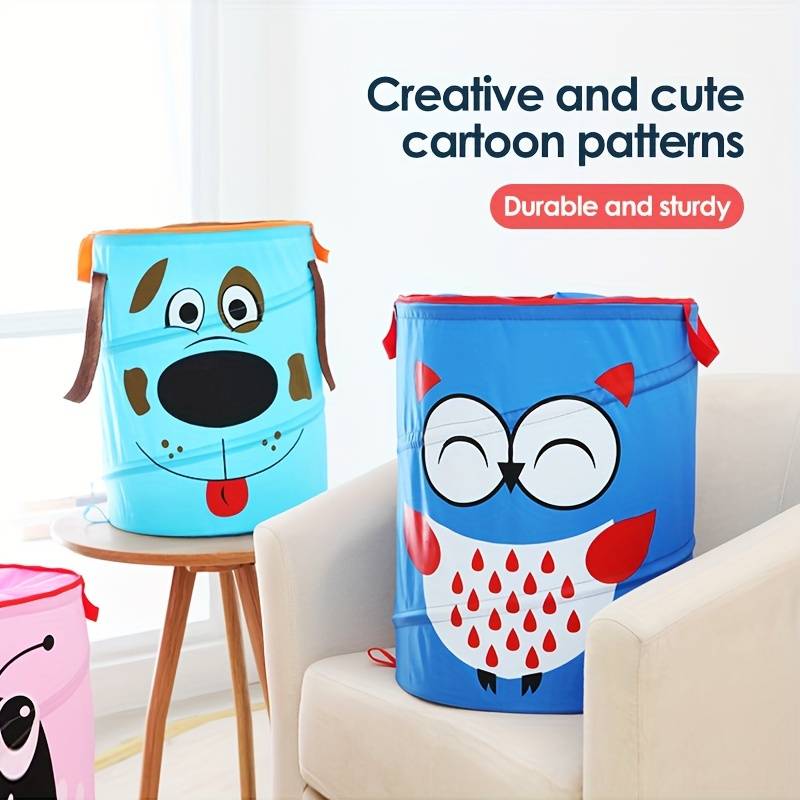 Cartoon animal folding storage bucket, sturdy and durable Oxford cloth, mask tie