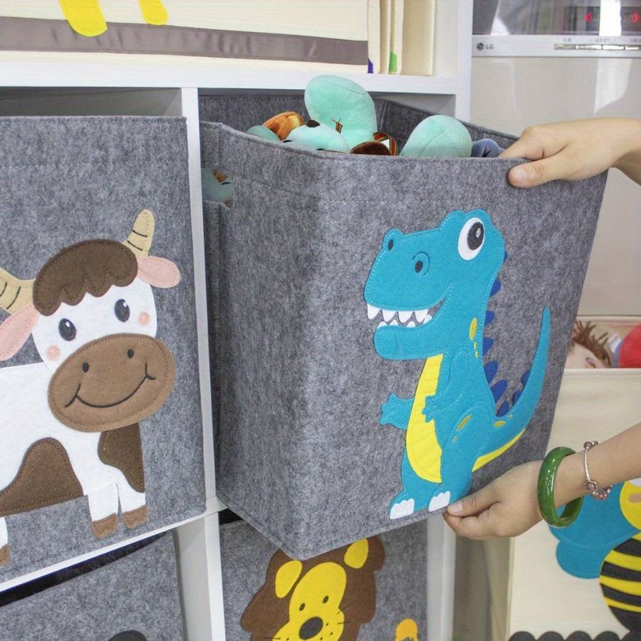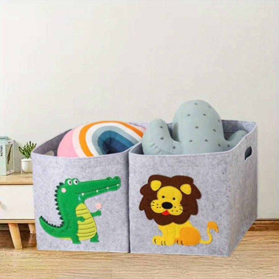 Washable Canvas Toy Storage Basket with Lion Design - Gray Fabric Organizer for Material:Canvas Applicable Age Group:14 Years+ Color:Grey