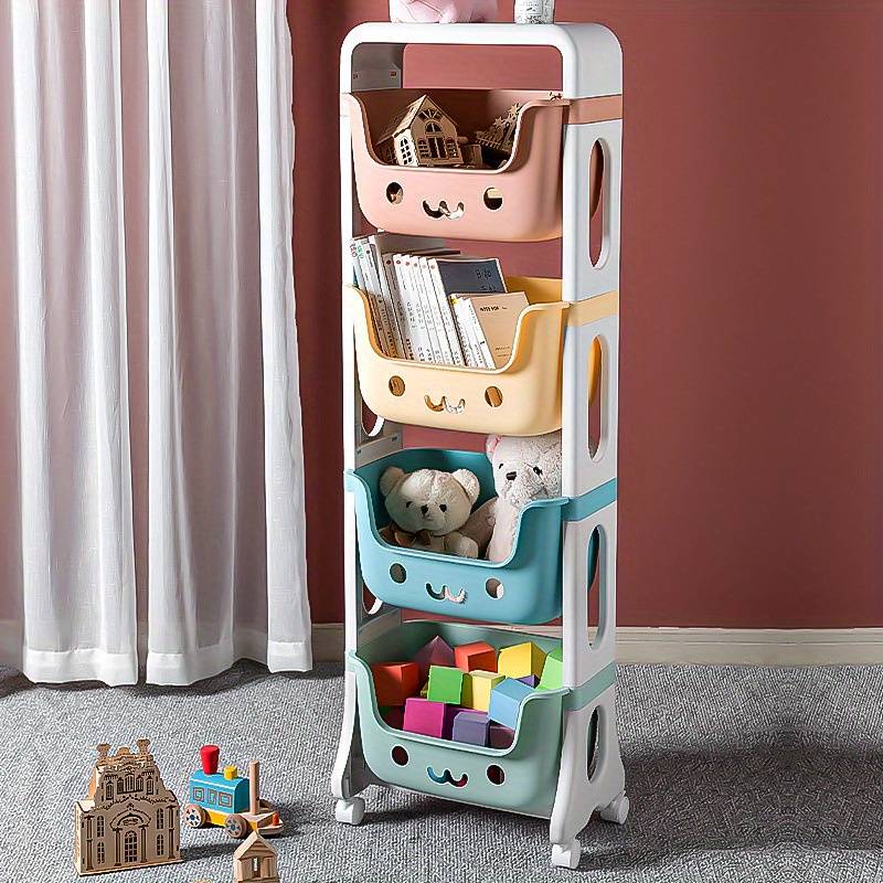 8-Tier Rolling Toy Storage Cart with Cute Animal Design - Mobile Multi-Layer Org Material:Plastic Applicable Age Group:14 Years+ Color:Yellow