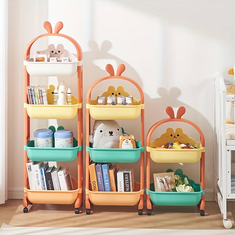 2-Tier Rabbit Ear Storage Rack with Wheels, Durable Plastic Organizer for Kidsᄀᆵ Material:Plastic Department:Teen boys Number Of Shelves:2 Applicable Age Group:18 Years+ Power Supply:Use Without Electricity Contain Wooden Materials:No Battery Properties:Without Battery Color:Orange Assembled or not:Yes