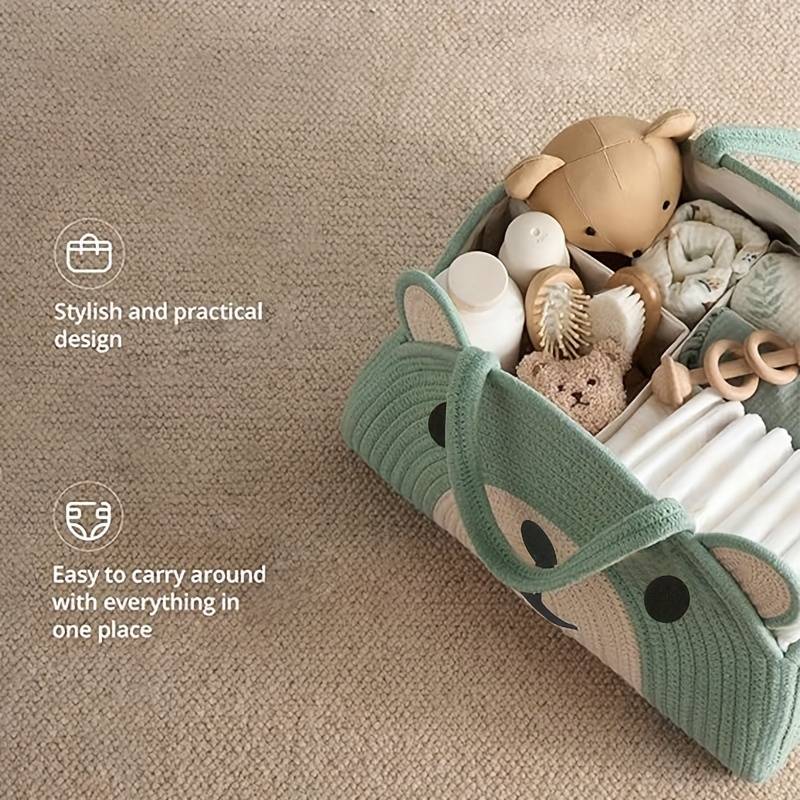 Charming Bear Design Diaper Caddy Organizer - Large Linen Storage Basket with Ad Major Material:Linen Applicable Age Group:14 Years+ Pattern:Animal Print