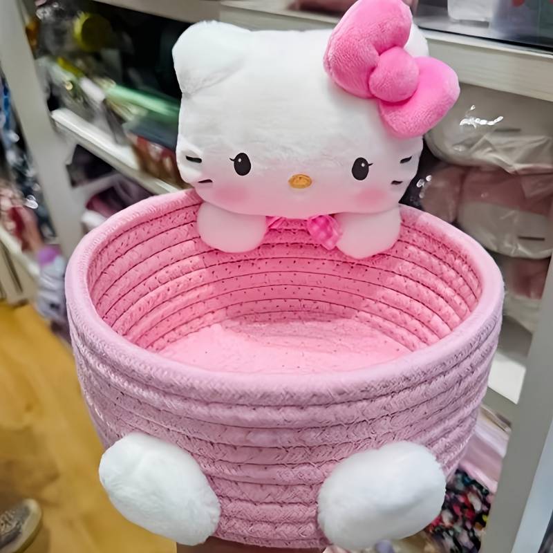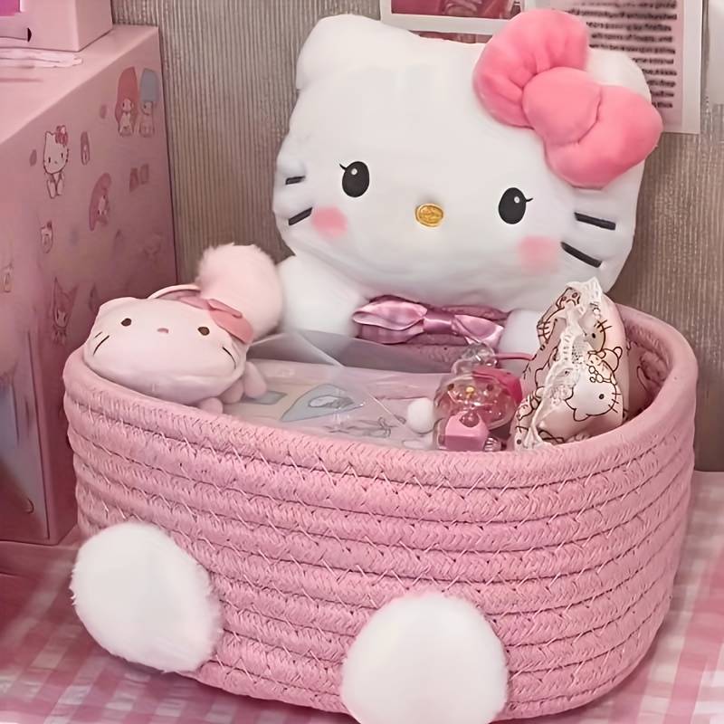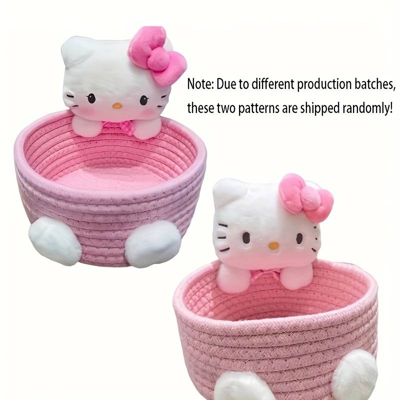 Sanrio1pcs Hello Kitty Kawaii Storage Basket Cute Harajuku Charm Cosmetics Stora Applicable Age Group:0 Year+ Brand:Sanrio Major Material:Polyester (polyester Fiber) Material:Polyester fiber Color:White,Pink