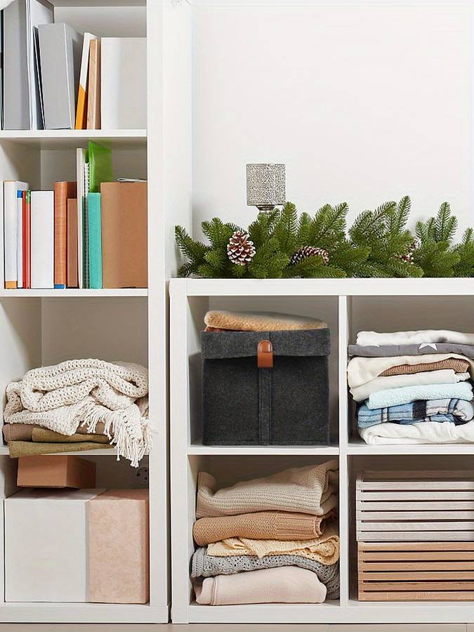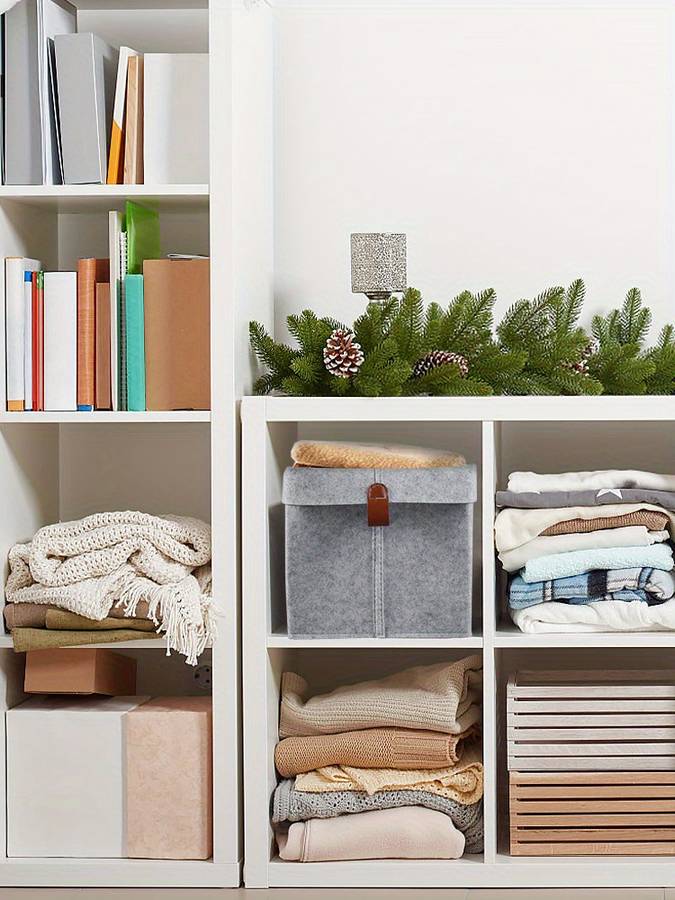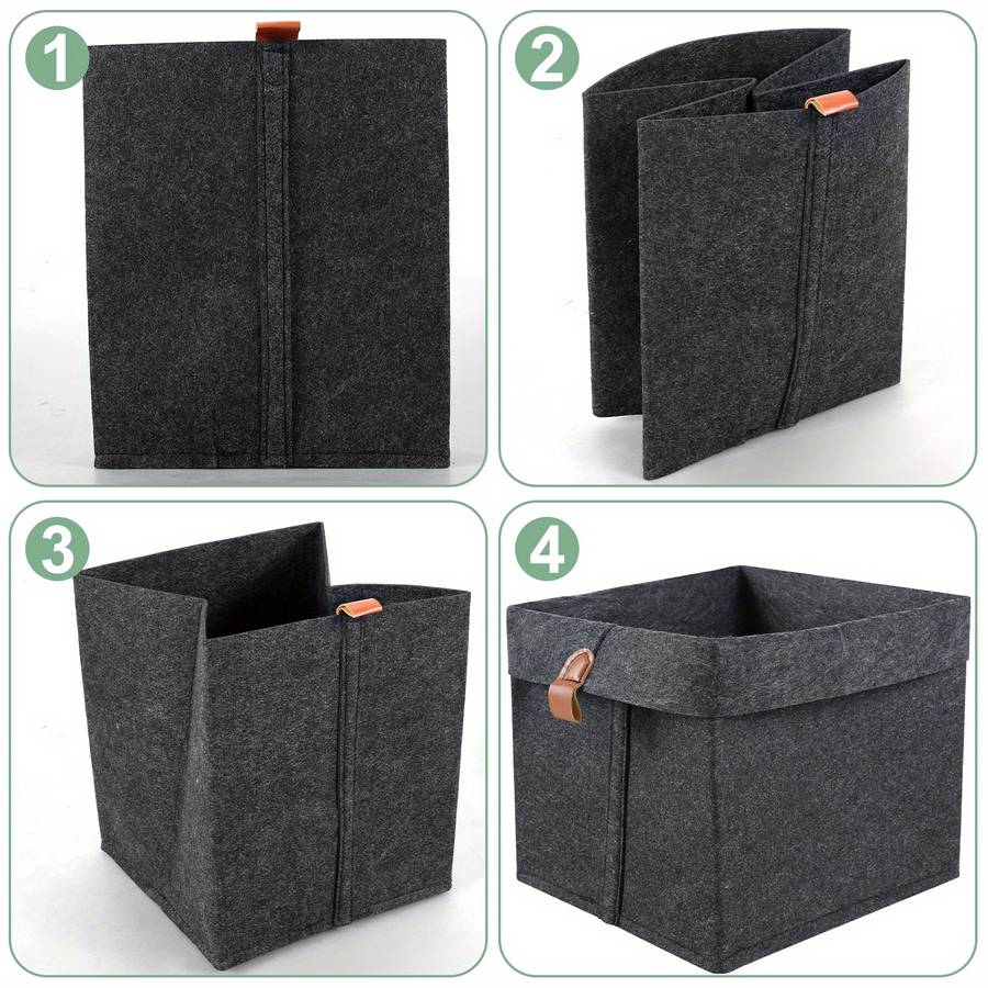 6pcs Gray Felt Storage Cubes, 22.86X22.86X25.4 cm Collapsible Organizers with Br Material:Felt Applicable Age Group:14 Years+ Color:Grey