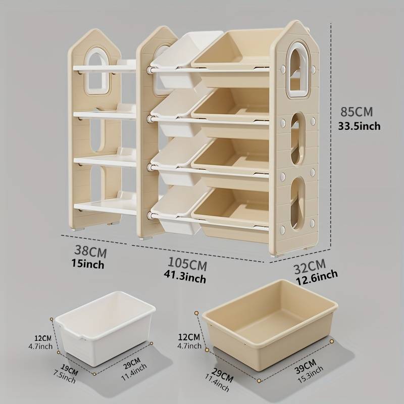TONELAB 4-Tier Stackable Plastic Storage Organizer with Bookshelf & Toy Compartm