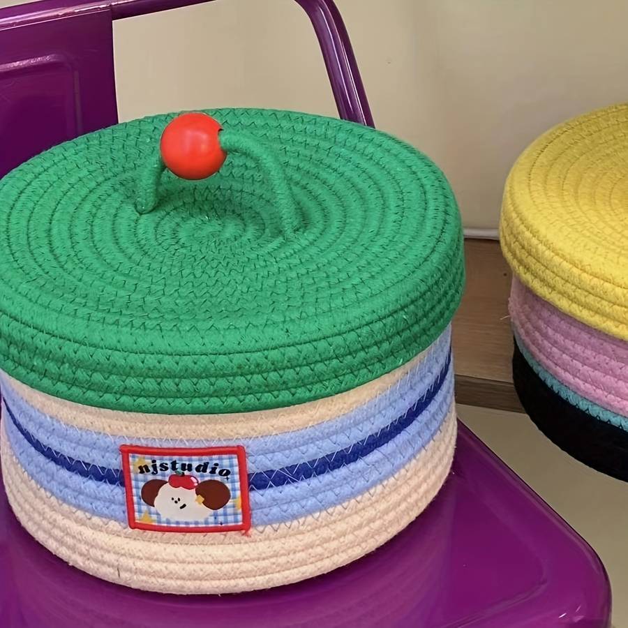 Cute Storage Basket, Rope Woven Storage Basket, Macaron Color Matching Toy Baske