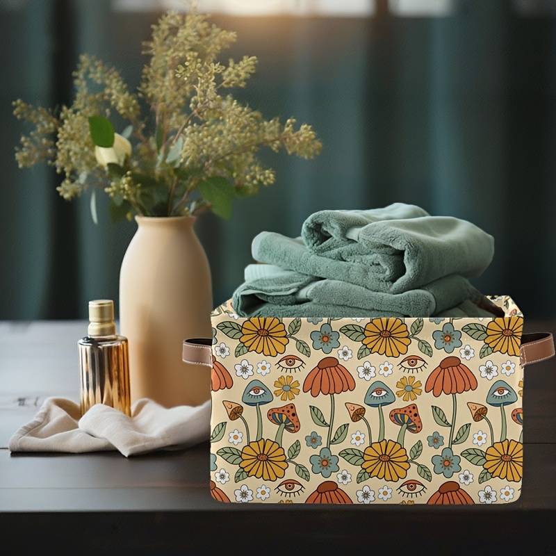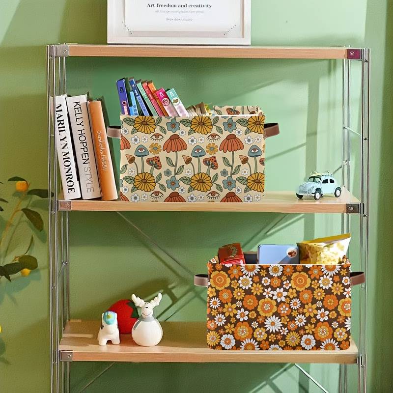 2pcs Retro Pattern Watermelon Mushroom Eye Storage Basket Foldable Toy Storage B Applicable Age Group:14 Years+ Brand:Kenodo