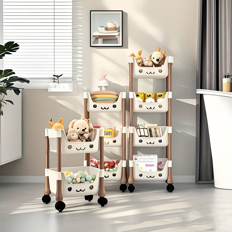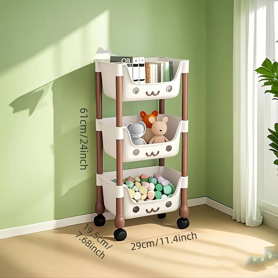 Multifunctional Rolling White Storage Rack, Portable for Bathroom, Kitchen, Offi Material:Plastic Color:Creamy White