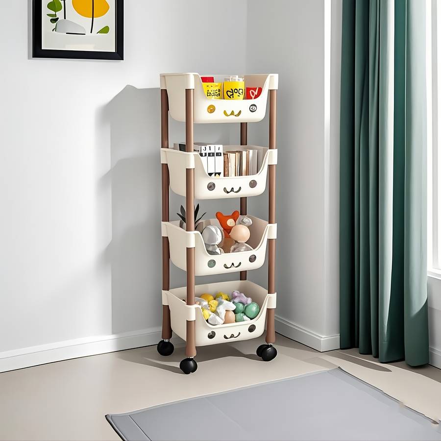 Multifunctional Rolling White Storage Rack, Portable for Bathroom, Kitchen, Offi Material:Plastic Color:Creamy White