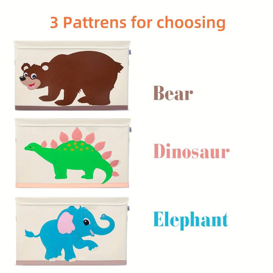 1pc Foldable Cartoon Animal Storage Box with Lid & Handles, Polyester Peach Ligh