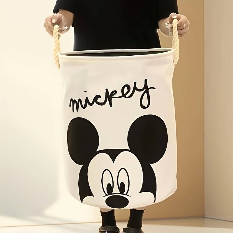 1pc Disney Mickey & Minnie Mouse Large Capacity Foldable Laundry Basket - White Material:Polyester Room Type:Various Room Types Shape:Round Style:Casual Accessory:Handle