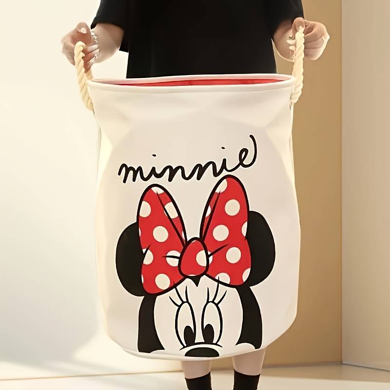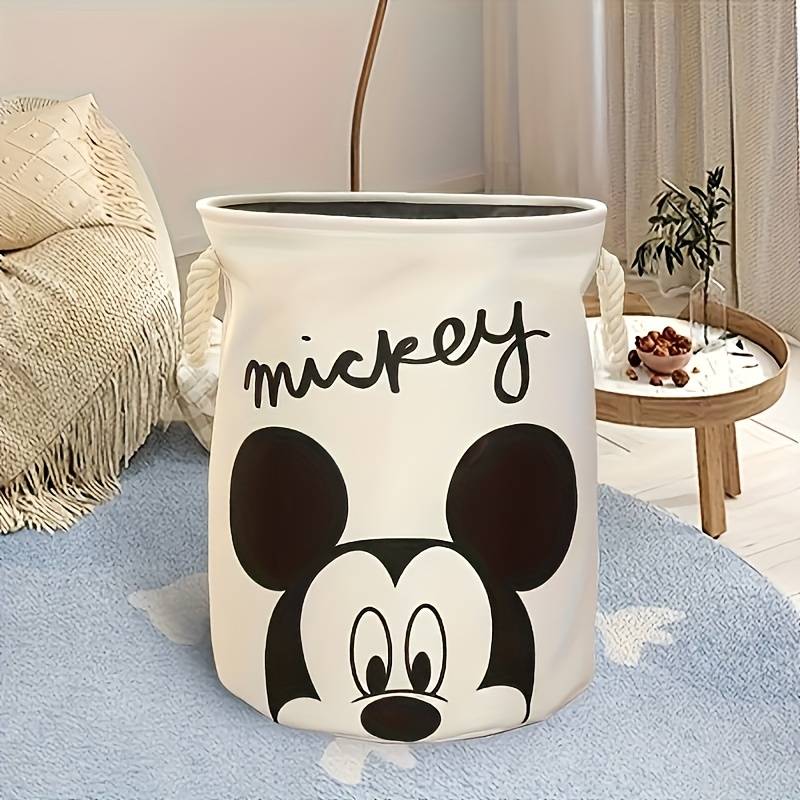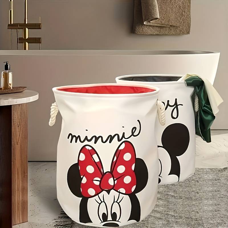 1pc Disney Mickey & Minnie Mouse Large Capacity Foldable Laundry Basket - White Material:Polyester Room Type:Various Room Types Shape:Round Style:Casual Accessory:Handle