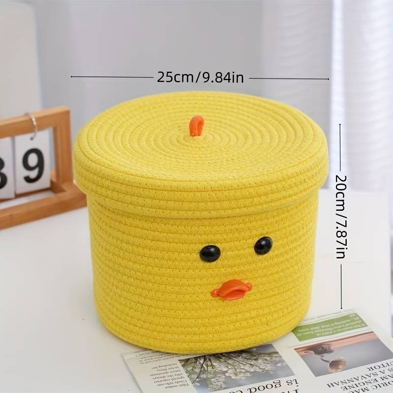 2-Pack Cartoon Yellow Duck Woven Storage Baskets, Cute Home Desk Organizer Caddi