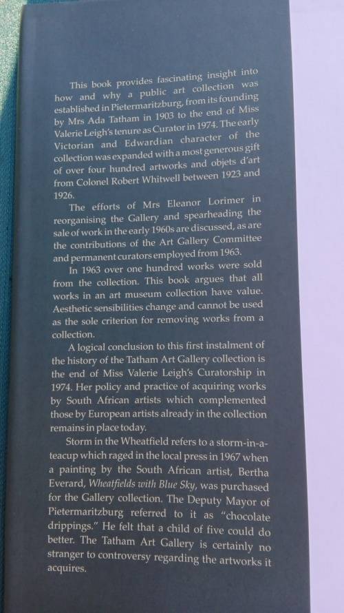 STORM IN THE WHEATFIELD ; The Tatham Art Gallery Collection 1903 to 1974 BRENDAN BELL ; Hardcover published by The Tatham Art Gallery 2009 ; ISBN 978 0 620 46150 4 ; No. of Pages ; 291