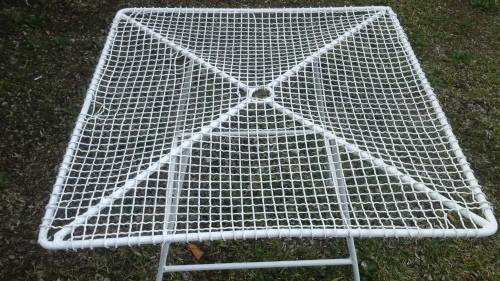 STRAIGHT FROM THE SEVENTIES. A SPECTACULAR WIRE AND ROUND BAR GARDEN TABLE SEATS FOUR. MAGNIFICENT PIECE.