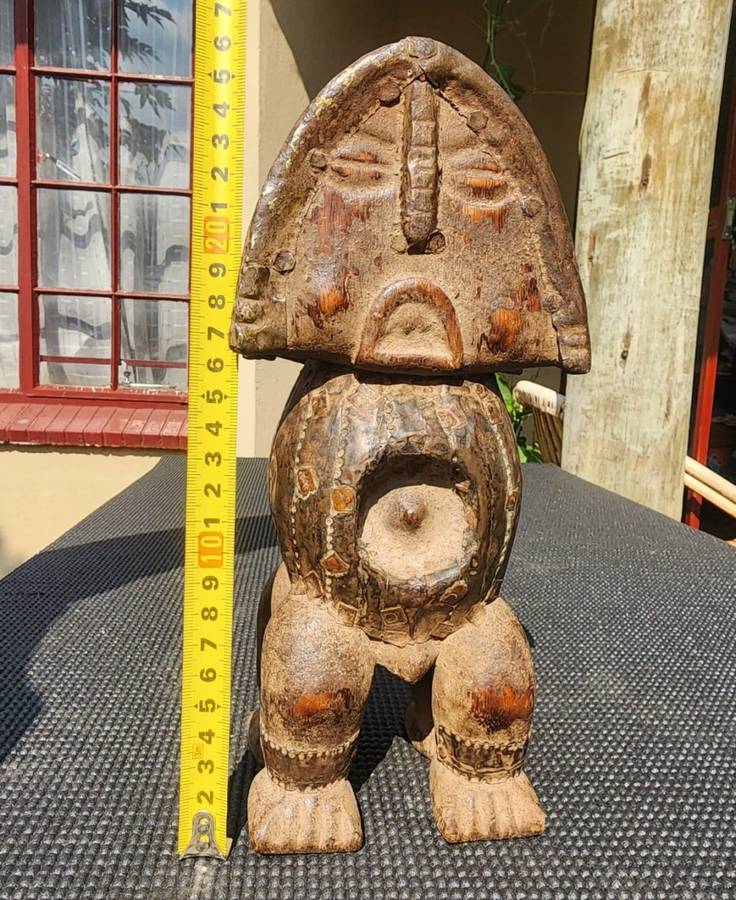 There are two variations of these yanda protective figures: the one with two diagonally outspread legs is identified as male, and the one without legs, with only a cylindrical body, is defined as female.Our yanda protective figure has two strong legs and is therefore male.