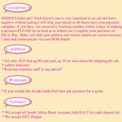 CHECK ALL MY ITEMS: http://www.bidorbuy.co.za/seller/1339953/Princess_T