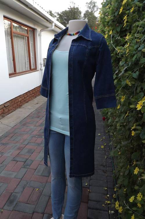 Stretch denim long OBR jacket with button down front.Size 30/6 or small 32/8.OBR is a small make!