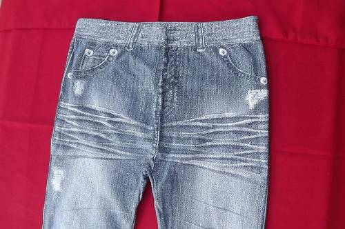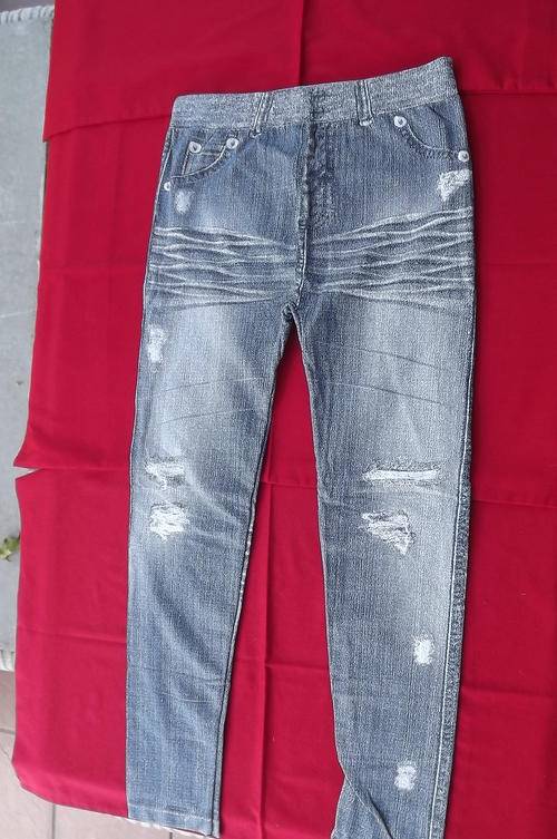 Stretch Leggings Type Pants with Denim Pattern Print in size 6/30 - made in Thailand - as new cond